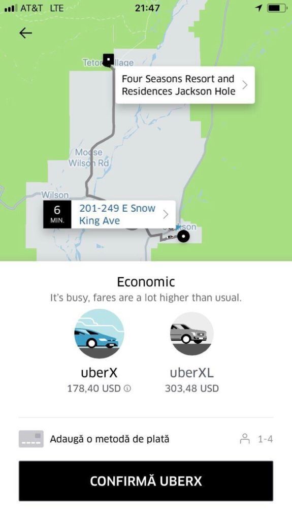 3.No Hidden fees and wrong ways or directions showed on the map. For example: Moose Wilson Rd is closed all winter long and sometimes in the summer because of bear activity on the road.Uber Shows customers estimated price but driver has to go another way and the price is double sometimes see picture bellow